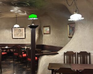 天井や壁は洞窟のように凹凸があり、照明もやや控えめなので、座る場所によって店内の見え方や明るさ、周りの音の聞こえ方まで変わってきます。