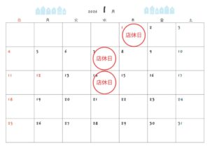 こんにちは、朝日珈琲サロンです! 1月の店休日をお知らせいたします。