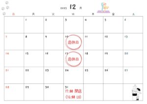 年末は12/31まで営業いたします。 (年末年始のご案内は、あらためてお知らせします。)
