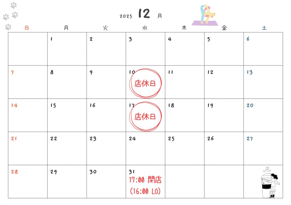 こんにちは、朝日珈琲サロンです! 12月の店休日をお知らせいたします。