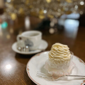 ツリーによく似合う雪山のようなこちらのケーキは、舟入のおかし茂さんのモンブラン。